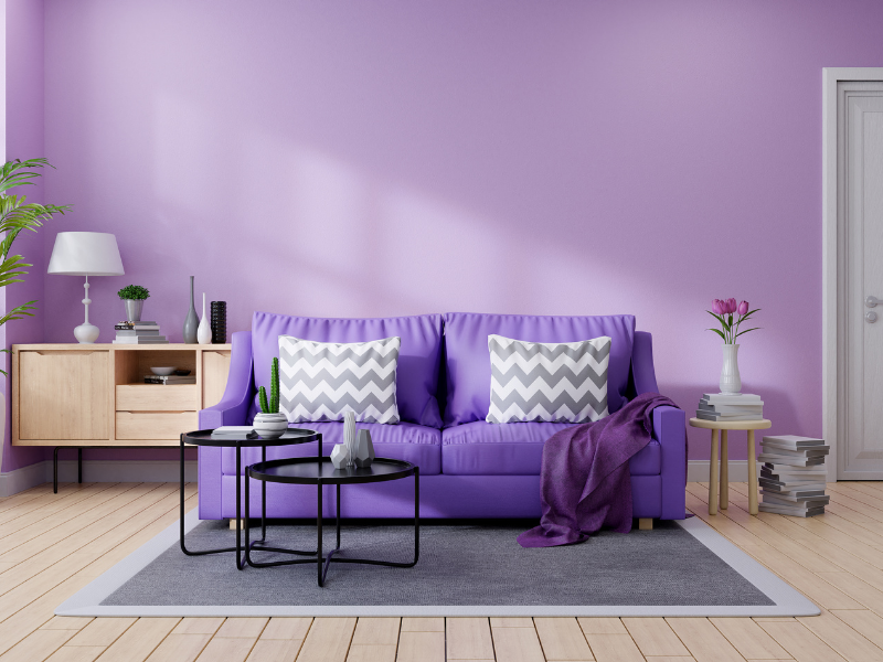 Purple. Purple is a color that is loved or hated as it is an eccentric color. Purple is flexible, so it can be used on a small area or large. It can be used in many ways depending on the way you use it and the shade you go with. Violet is a deep color but not too dark and can be a relaxing choice for a bedroom. If you have a large space with a lot of natural light, then you can go with a lighter shade like lavender. Lavender is a great shade of purple to refresh a space. Using purple in your home will make you a trend setter!